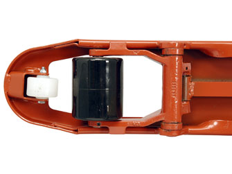 Einfach-Gabelrollen werden bevorzugt auf ebenen Böden eingesetzt und ermöglichen ein einfaches Rangieren. Der Verschleiß an den Rollen ist höher als bei Tandem-Gabelrollen. Die weiße Kletterrolle erleichtert das Einfahren in Paletten mit Bodenträgern.